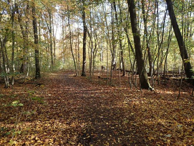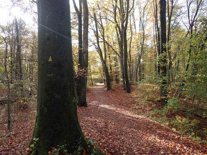 Alsterwanderweg Schleusenredder Duvenstedt Noch war ich aber nicht genug südlich, um den Weg blind zu finden. Ich brauchte weiterhin die Navigation. Aber seltener. Ein Stück geradeaus war Start des Kleinbahn-Marathon im Wohldorfer Wald. |