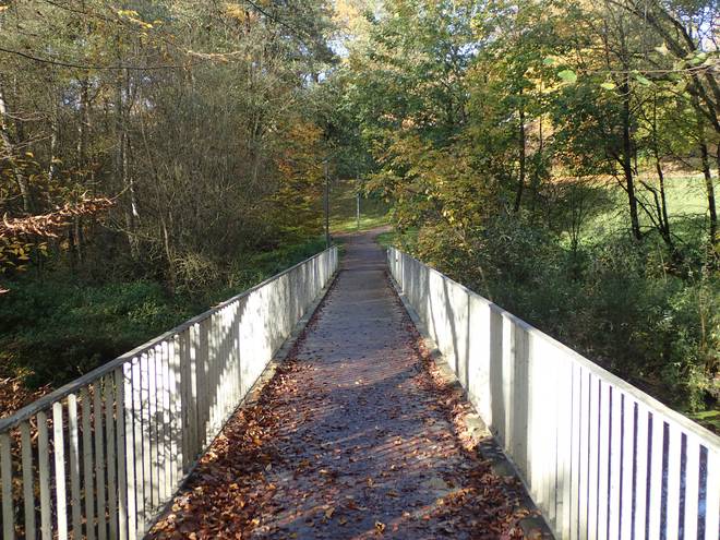 Alsterwanderweg Reye Duvenstedt -> Rodenbek Höhenmeter gab es auf der Strecke jede Menge. Meist sammelte man sie aber auf der latent welligen Strecke ganz automatisch. So eine Rampe wie hier war selten. |
