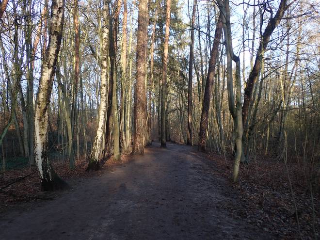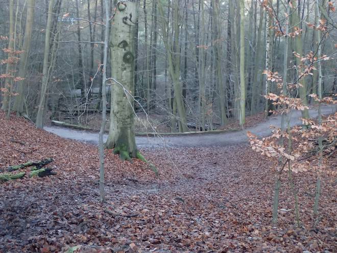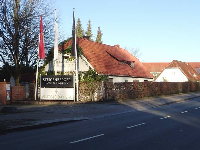 Hotel Treudelberg Dem GPX-Track nach sollte mich der Weg quer über einen Goldplatz führen. Das ließ ich aber lieber sein. Golfbälle sind nicht gerade ungefährlich. So nahm ich lieber den weniger gefährlichen Weg in Richtung Kupferteich. |