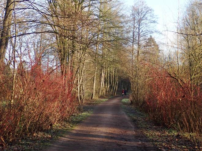 Weg über dem Alstertal 10.03 Uhr / Km 9,7 Ein Tal ist ja immer unten und wo es ein unten gibt, da gibt es auch ein oben. Hier ist dieser Höhenunterschied nicht sehr groß, aber immerhin. |