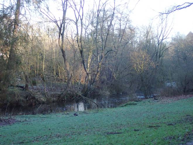 An der Alsterschleife Diesen Fluß mußte ich ganz ohne Brücke überqueren. |