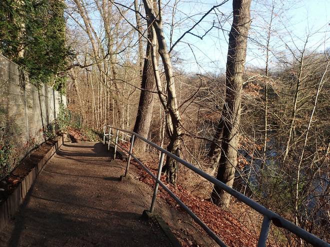 Weg über dem Alstertal An der Grenze zwischen dem Tal und dem Wellingsbüttler Wohngebieten für dieser eher schmale Weg entlang. |