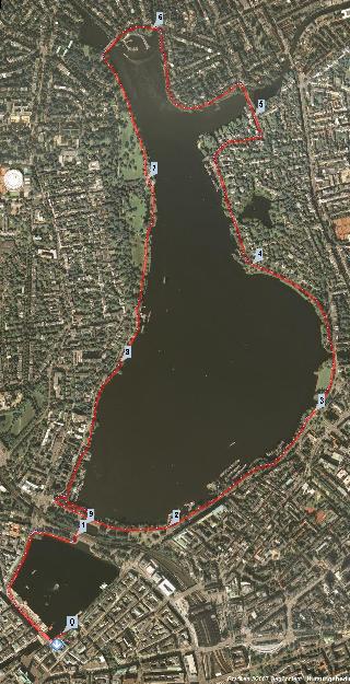 Außenalster (entgegen dem Uhrzeigersinn) und zurück über den Neuen