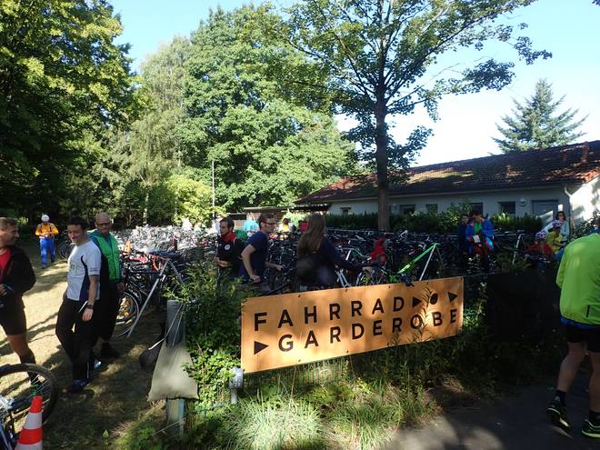 Borsteler Chaussee 10.05 Uhr Die Fahrrad-Garderobe ist eine prima Idee. Ich hatte zwar gedacht, es gäbe auch gleich eine Umkleide, aber die gab am Sportplatz. |