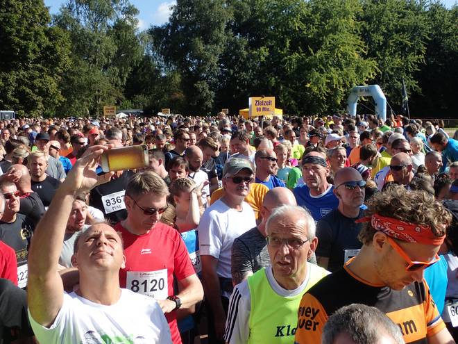 Lufthansa Sportverein eV Bosteler Chaussee 10.58 Uhr 1794 Läufer fanden sich am Start ein. Für die 10 Meilen (16,09 Kilometer) waren Zielzeiten bis 120 Minuten ausgeschrieben.
