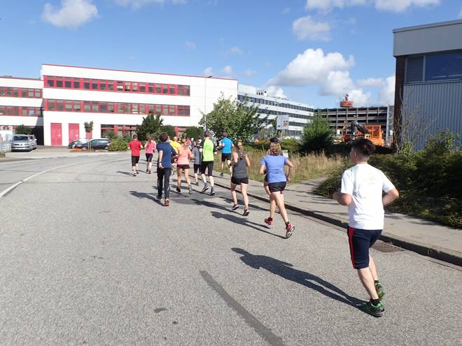 Lufthansa Technik Hamburg Airport 11.14 Uhr / Km 2,9 Ich war etwas schneller unterwegs als gedacht. Vielleicht war die Form trotz des anstrengenden Urlaubs mit Umbau der Wohnung und nur wenig Laufen doch noch gut. |