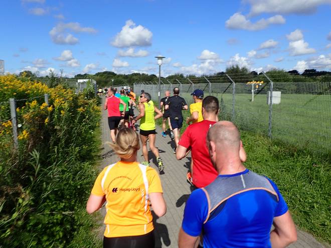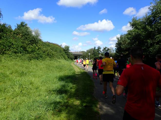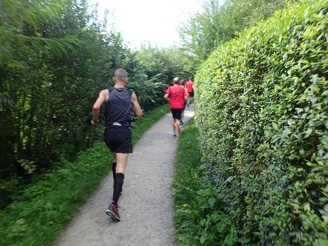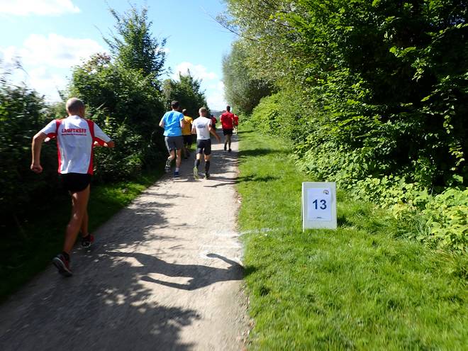 Flughafenwanderweg 11.59 Uhr / Km 12,6 Auch wenn es eng war, ich rannte Läufer für Läufer an allen vorbei. |