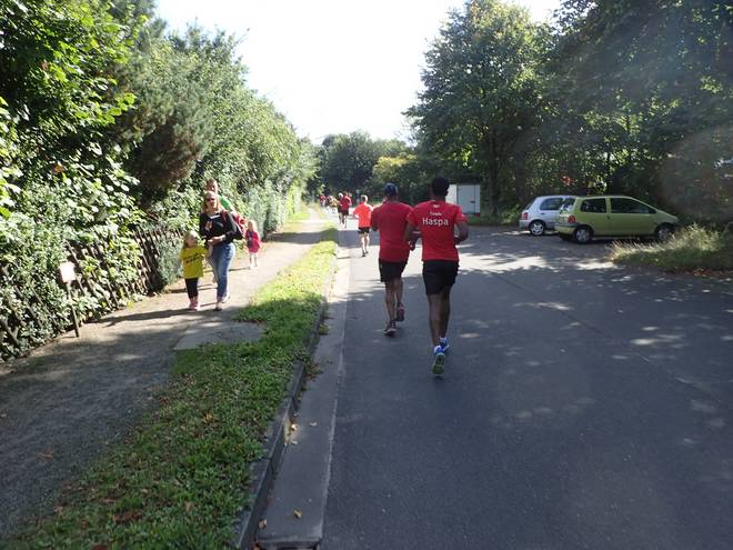 Holtkoppel 11.31 Uhr / Km 6,5 Da gab es auch den ersten von drei Getränkestellen. Ich lief am Stand vorbei, brauchte nichts zu trinken. |