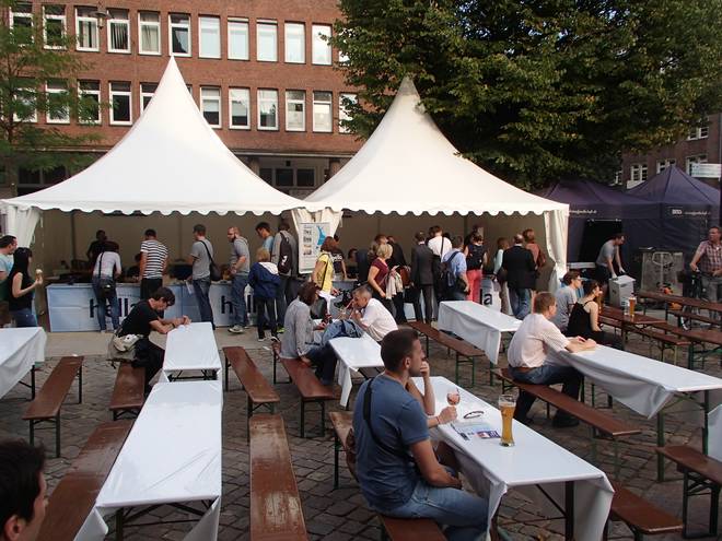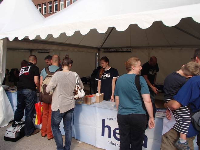 Bergstraße / Hauptkirche St. Petri 10.44 Uhr Getränke-Sponsor Hella hatte so ziemlich jeden Geschmack auf die Tische gestellt. So viel konnte ich dann leider doch nicht trinken. Aber lecker war es. |