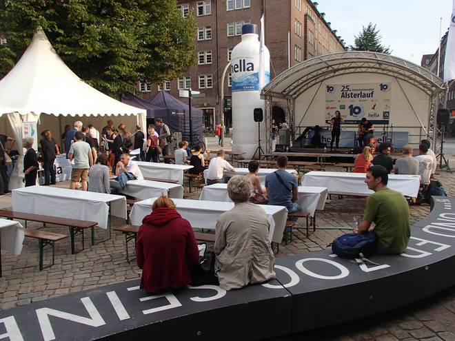 Finish | 6 Punkte | Schön viele Zuschauer am Ballindamm direkt an der Binnenalster. Prima Zielkanal, gute Stimmung. Wenn man nur schon früher erkennen könnte, welche der vielen Torbögen das Ziel ist. |