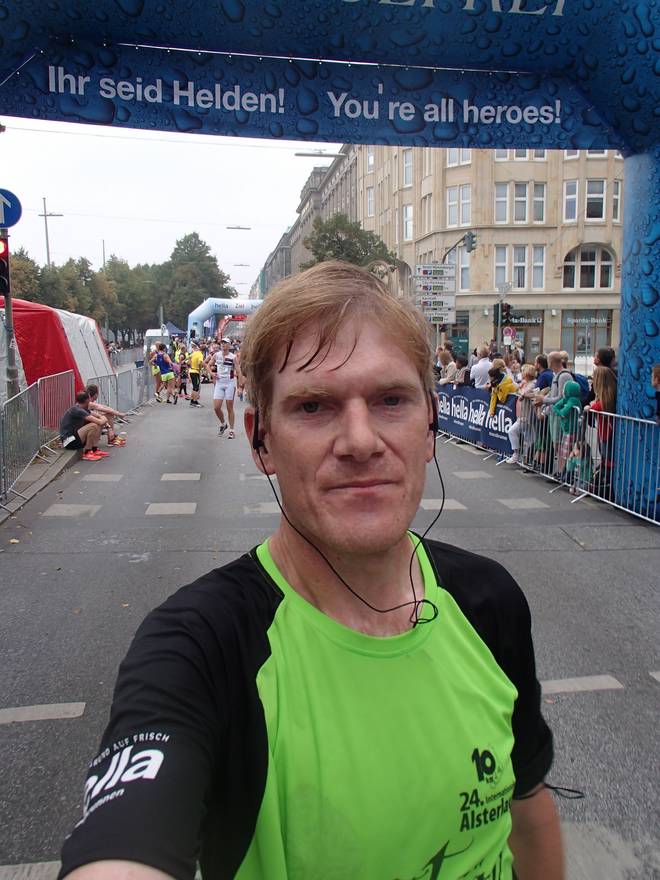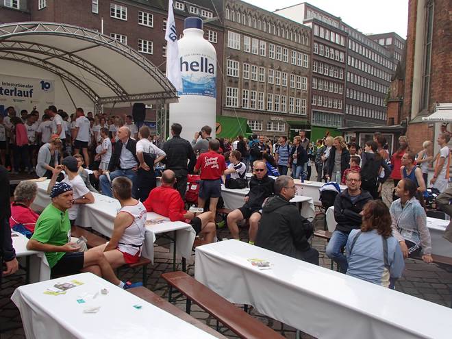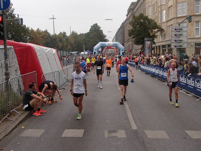 Ballindamm 10.41 Uhr Ich war fix und fertig. Schlimmer als nach jedem Marathon. Einen Zehn-Kilometer-Lauf geht man halt nicht taktisch an, sondern rennt nur was geht. |