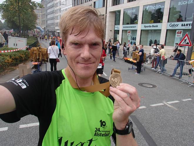 Ballindamm 10.43 Uhr Und an jenem Tag war wirklich alles gegangen. Und eine schöne Medaille gab es auch noch. |