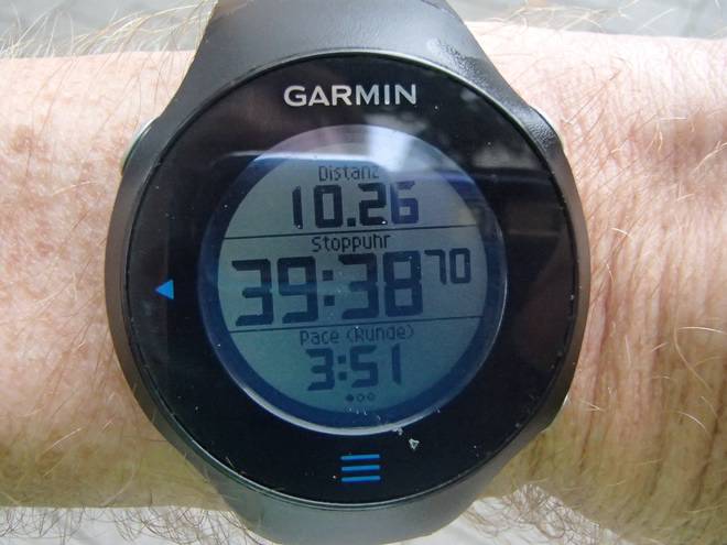Auf der Zieluhr hatte ich zuletzt 39:48 Minuten gelesen. Brutto. Meine Uhr hatte ich kurz nach dem Ziel gestoppt. Ein wenig schneller sollte ich gewesen sein. |
