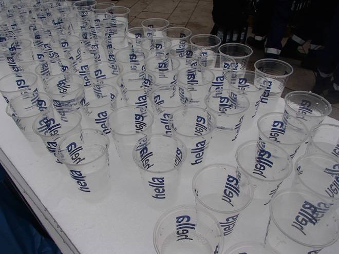 Bergstraße 10.44 Uhr Nun ging es zunächst einmal an die Getränke. Auf der Strecke selbst gab es keine Verpflegung. Nach dem Lauf dafür um so mehr. |