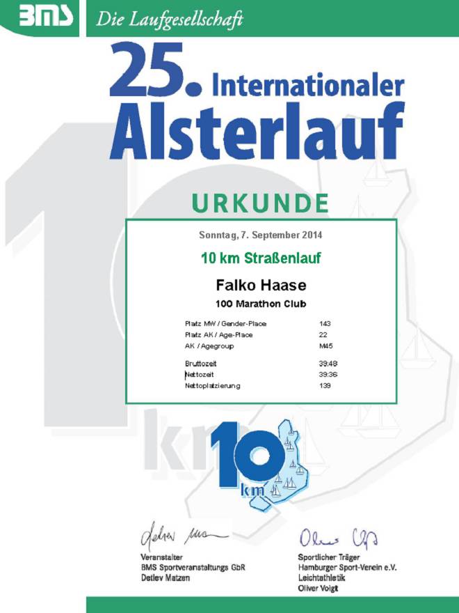 Jakobikirchhof 11.15 Uhr Aber dann hatten wir es doch noch schriftlich. Und auf der Urkunde. 39:36 Minuten Natürlich mein persönlicher Rekord auf Zehn Kilometern. Unglaubliche 23 Sekunden schneller als 2013. Und den Lauf hatte ich schon für perfekt gehalten. |