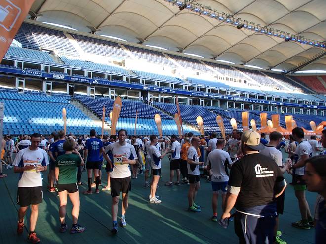 Parkplatz Arenen Weiß 19.26 Uhr Nur noch ein paar Meter bis ins Stadion. Gegen die Spurts so manch anderen Läufers konnte ich kontern, aber ich hatte mein Tempo sehr gut hoch gehalten, ohne mich zu früh vollends zu verausgaben. |