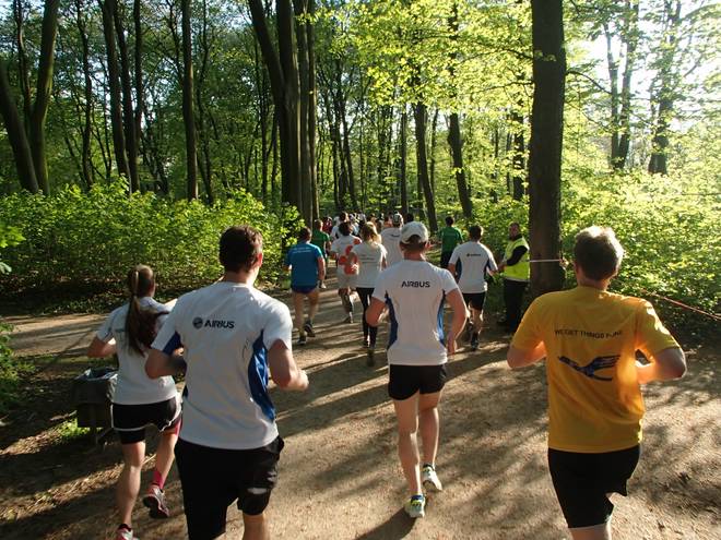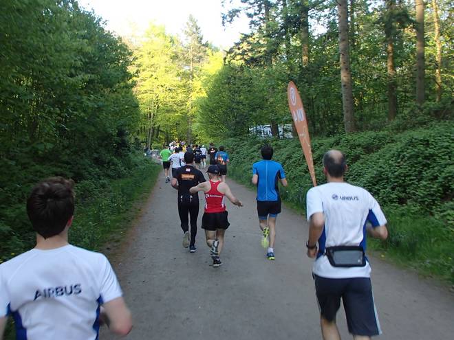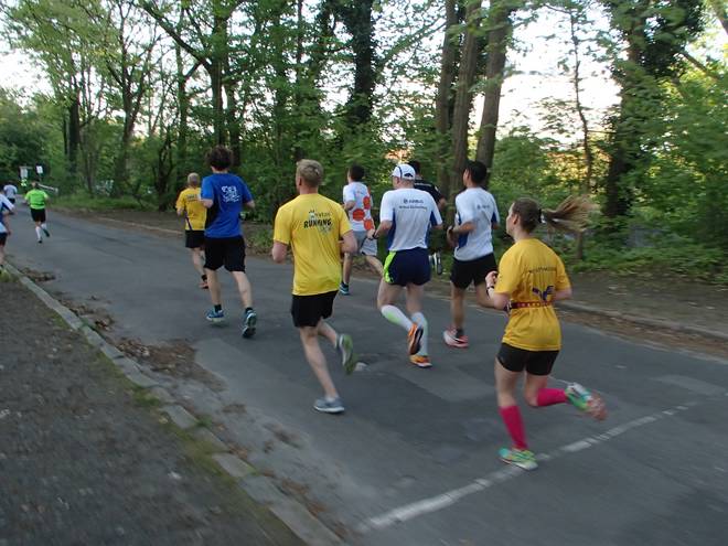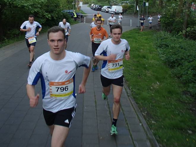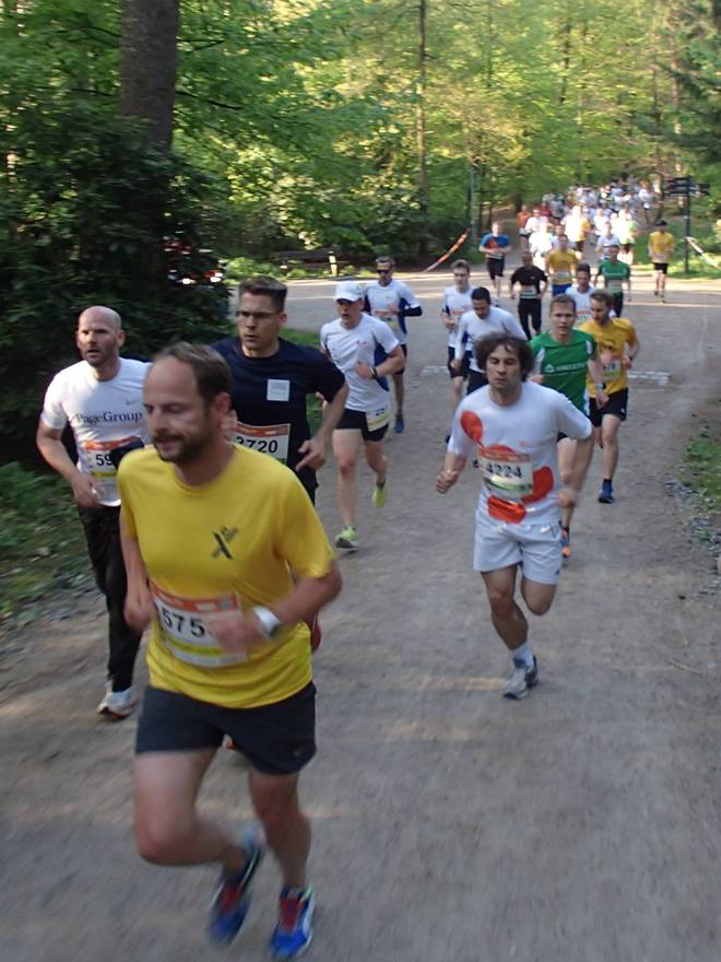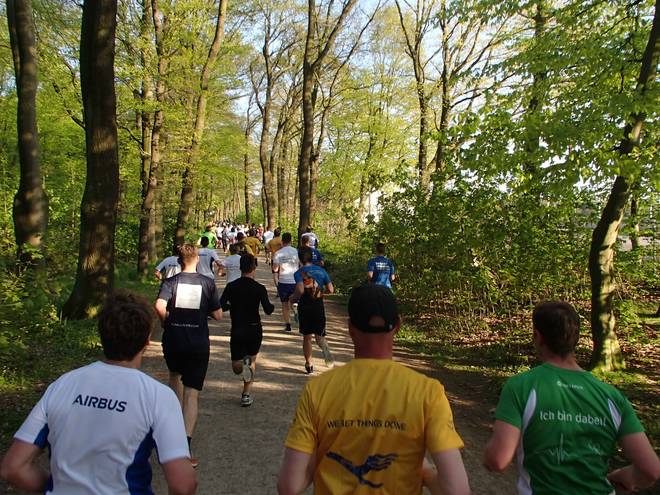 Altonaer Volkspark 19.03 Uhr / Km 0,6 Für ein so großes Feld ist die Strecke ziemlich schmal. |