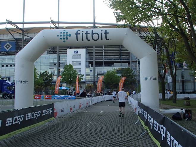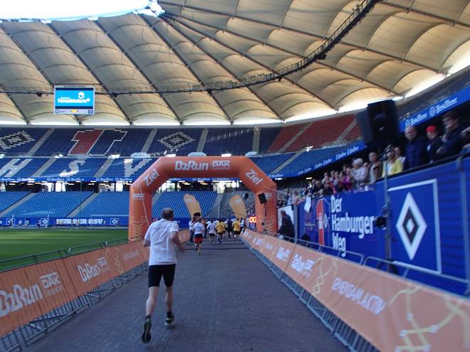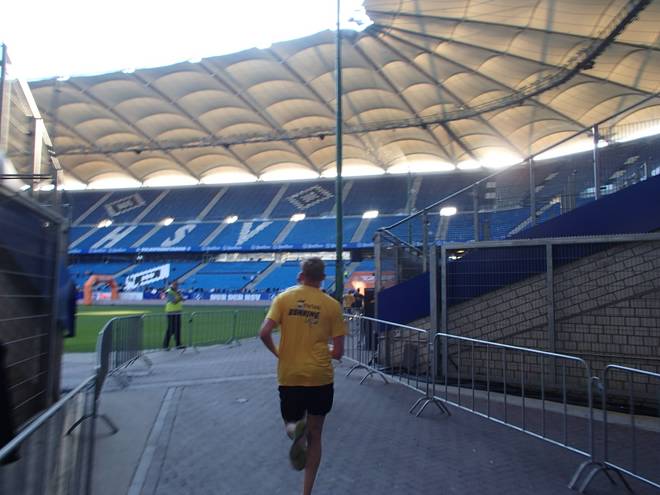 Volksparkstadion 19.24 Uhr / Km 5,7 Dann eben hier finishen. Half ja nichts. |
