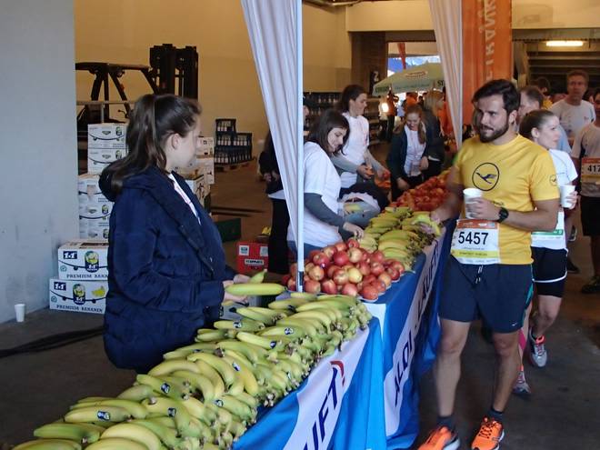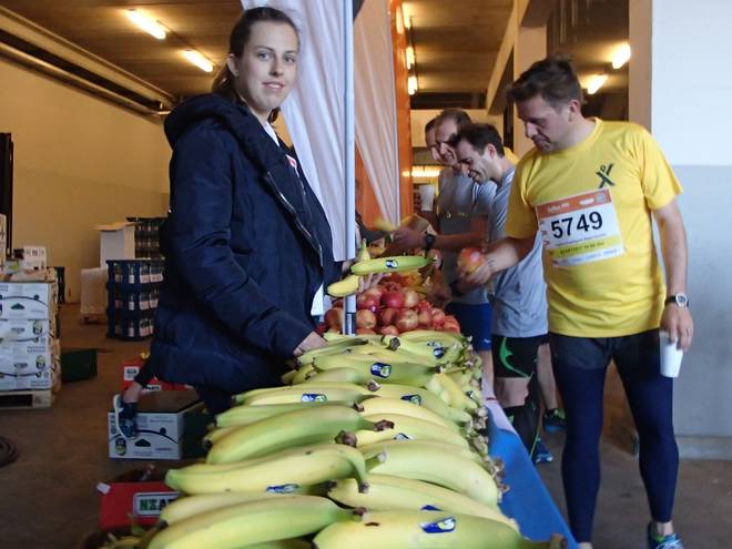 Volksparkstadion 19.29 Uhr Aber egal. Ich wußte ja, was ich tatsächlich erlaufen hatte und war damit mehr als zufrieden. Darauf erst einmal ein Besuch am Verpflegungsstand mit wie immer ganz viel Obst. |