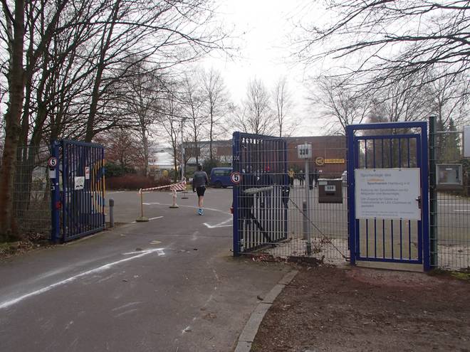 Lufthansa Sportverein eV 8.58 Uhr Veranstaltungslände war die Sportanlage des Lufthansa Sportverein eV. mit den Hallen der Lufthansa am Hamburger Flughafen im Hintergrund. |