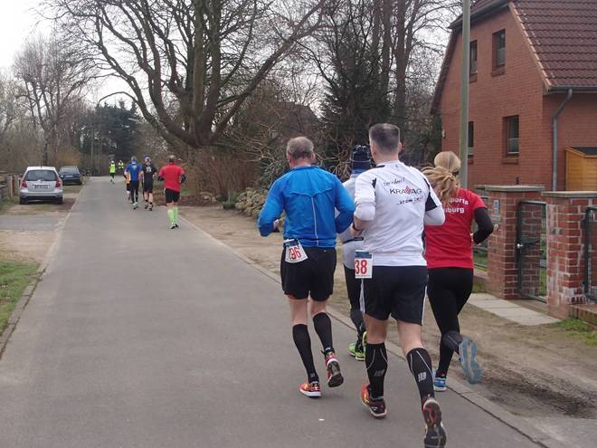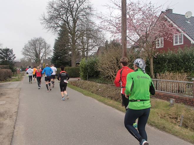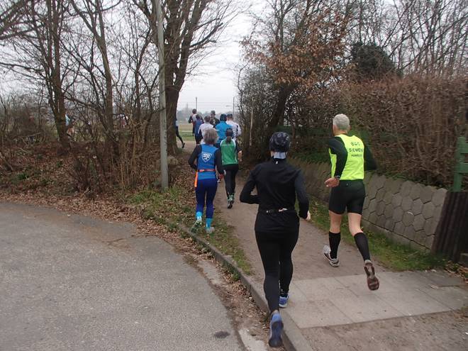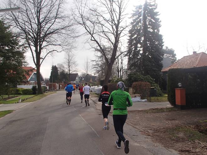Reitzeweg Amselweg 10.32 Uhr / Km 12,4 Da keine Gruppe mehr da war, lief ich nun direkt hinter Jens und Jörg vom Hamburger Laufladen. |