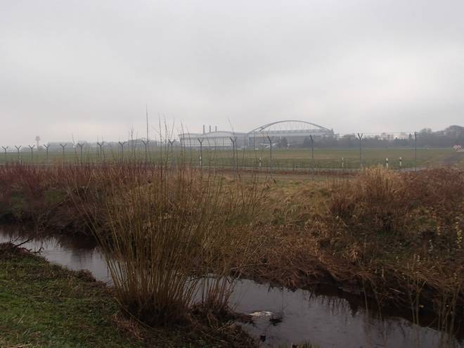 Flughafenwanderweg 9.46 Uhr / Km 3,0 Diese Halle konnte man auch vom Start aus sehen. Da von der anderen Seite. |