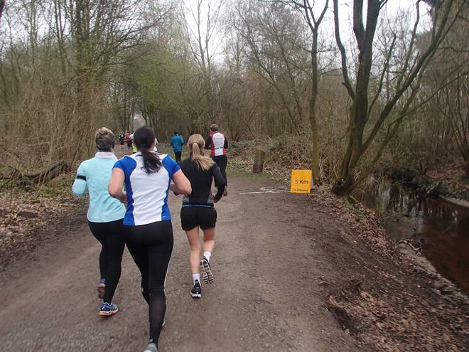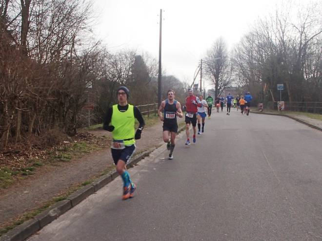 Steinhoffweg 10.13 Uhr / Km 8,5 Und wieder waren ein paar Läufer aus der Gruppe zurück gefallen. Davon ließ ich mich aber immer noch nicht beirren. |