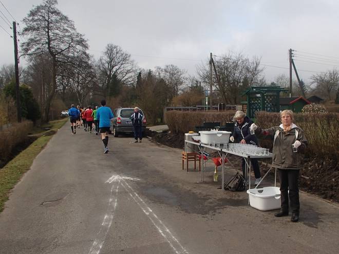Engernweg 10.05 Uhr / Km 6,7 Einer von zwei Getränkestellen auf der Strecke. Diese diente später auf der zweiten Runde auch noch als dritte Stelle. |