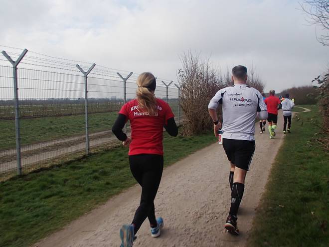 Lufthansa Sportverein eV 9.31 Uhr / Km 0,05 Gleich nach dem Start war die Spitze des Feldes weit weg. Gelaufen wurden zwei ähnliche Runde in Flughafennähe. Die erste Runde war 12 Kilometer lang, die zweite Runde war fast wie Runde Eins, aber etwas angekürzt und somit nur neun Kilometer. |