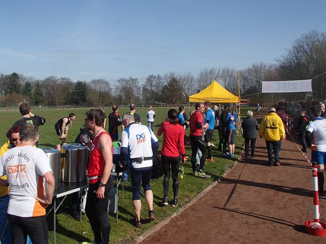 Organisation | 5 Punkte | Anmeldung und Ausschreibung muß man sich erstmal zusammen suchen, aber dann klappt es gut. Vor Ort war zunächst auch alles in Ordnung. Allerdings wurde nach dem Start vergessen, die zweite Stadionrunde zu drehen. Die wurde dann hinter Kilometer 12 nachgelaufen. Insgesamt wurde die Strecke aber so 150 Meter länger. |