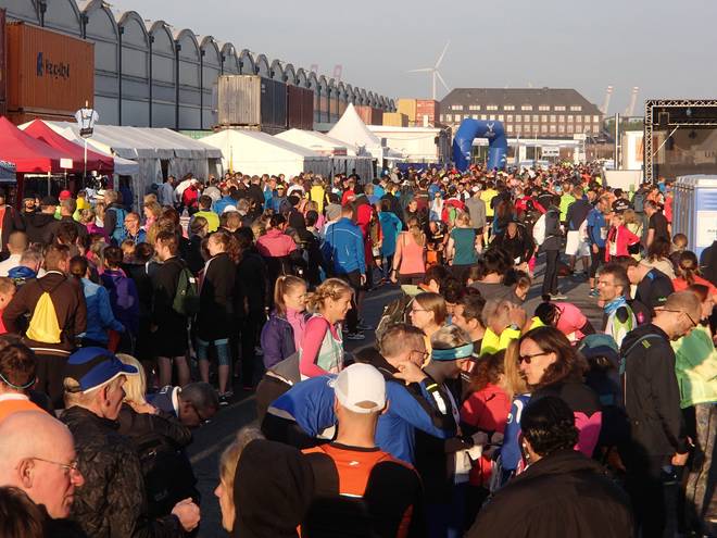 Am Windhukkai 8.07 Uhr Der Hamburger Laufladen war natürlich auch dabei. |