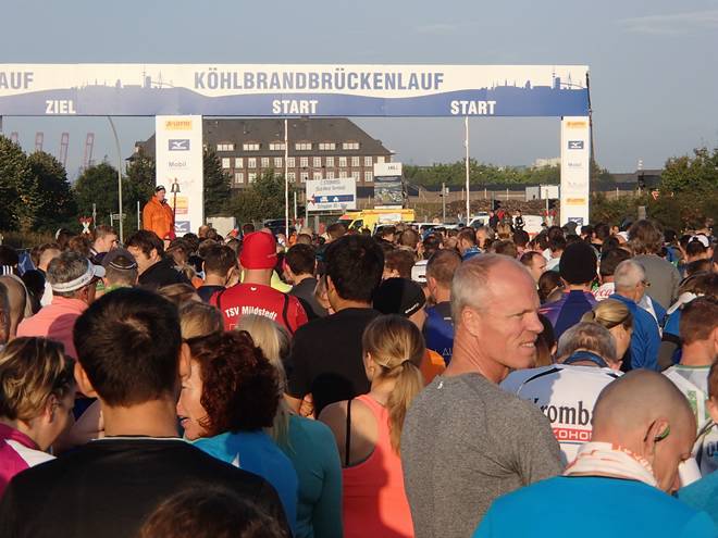 Am Windhukkai 10.04 Uhr Am Ende hatte ich wahrlich Glück, daß es sich um den KöhlbrandbrückenLAUF handelte. Einen Walking-Wettbewerb hätte ich nicht überstanden. |