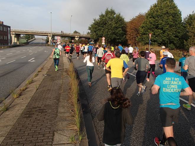 Veddeler Damm 9.05 Uhr / Km 0,7 Ich hatte im Vorfeld ja mit vielen gerechnet, aber damit dann doch nicht. |