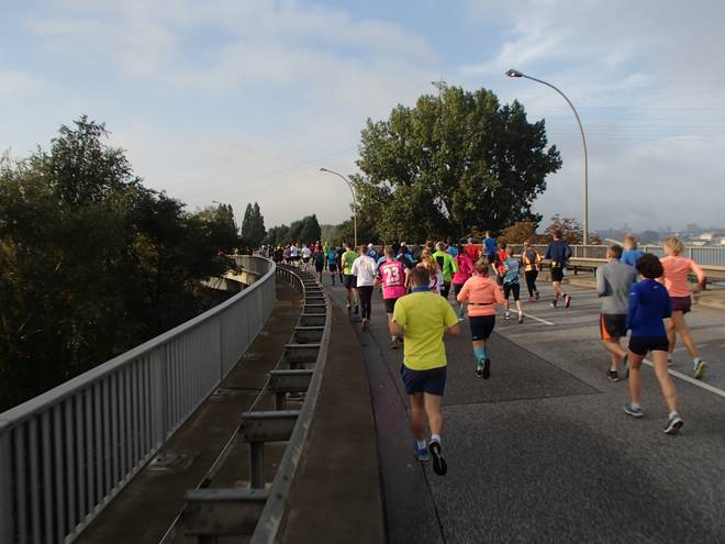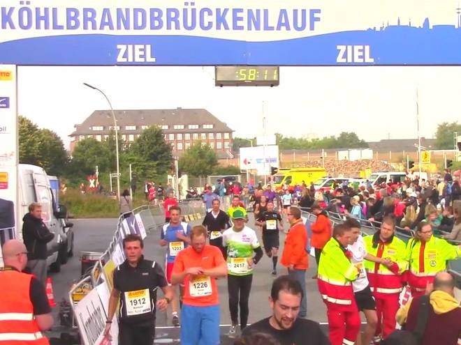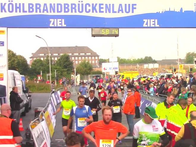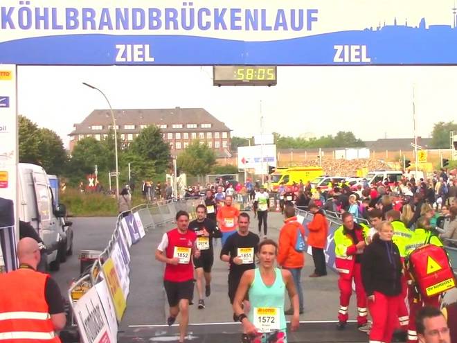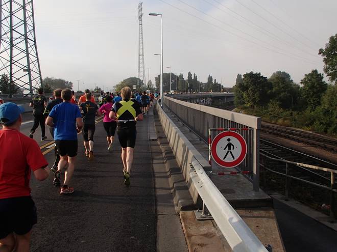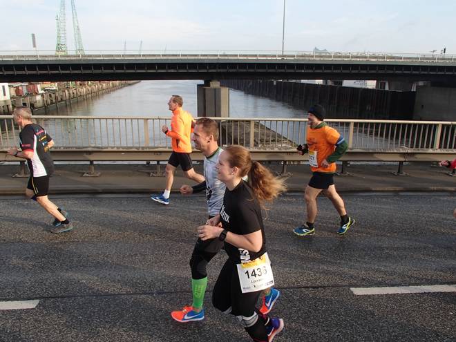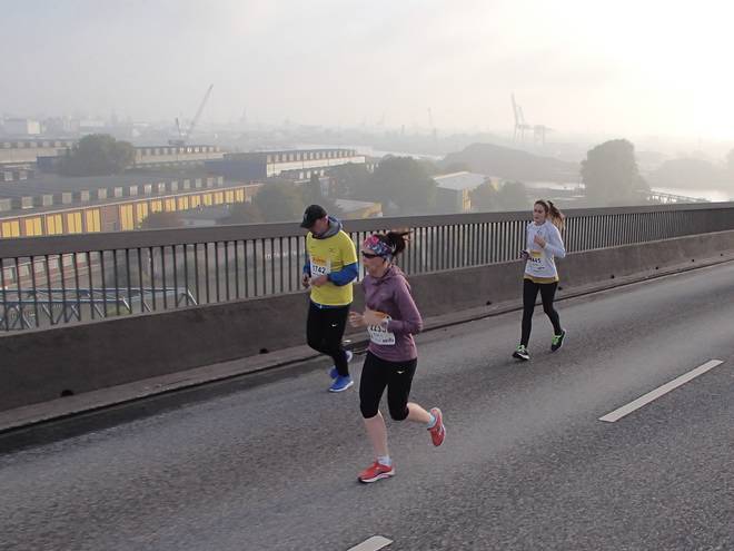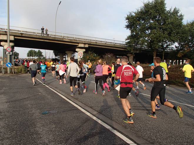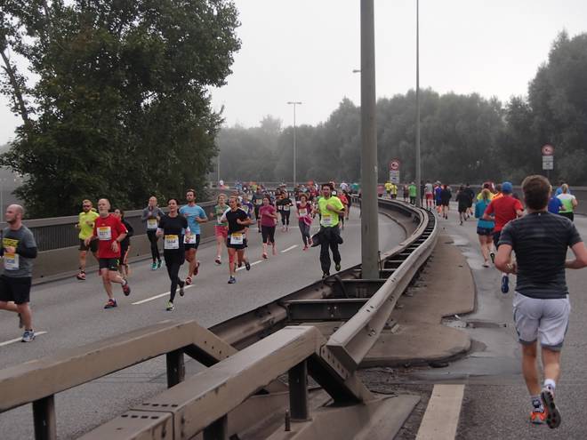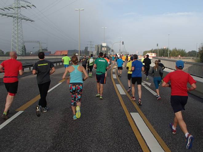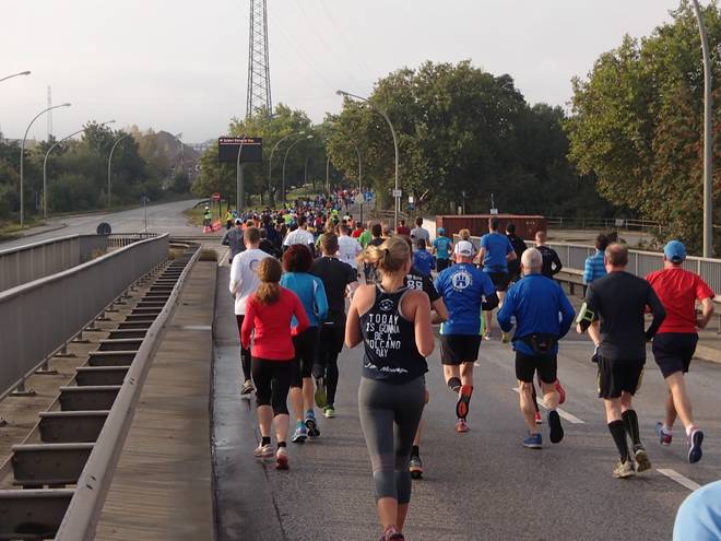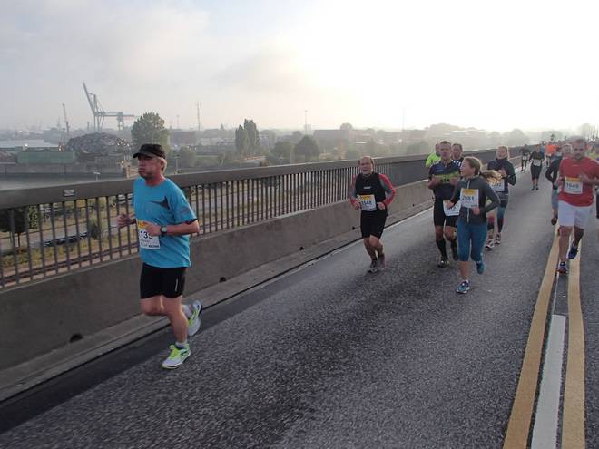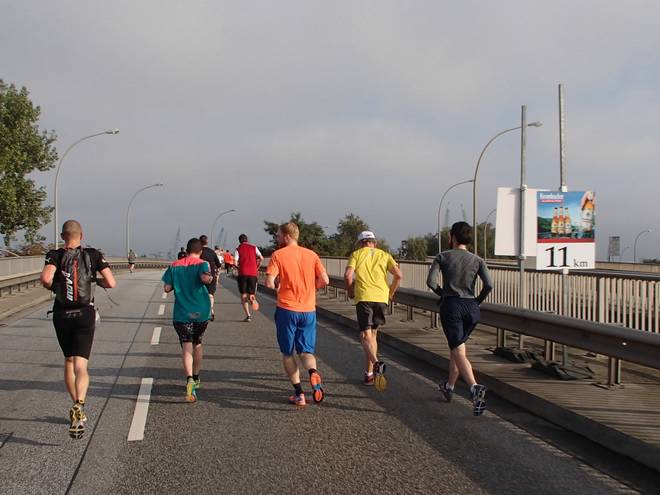 Ellernholzbrücke 9.56 Uhr / Km 11,2 Aber egal. Nun wollte ich nach der Jahresbestzeit im Marathon am Vortag noch den Köhlbrandbrückenlauf in weniger als einer Stunde schaffen. Die Quote dafür stand 2016 bei 19,3% aller Läufer. |