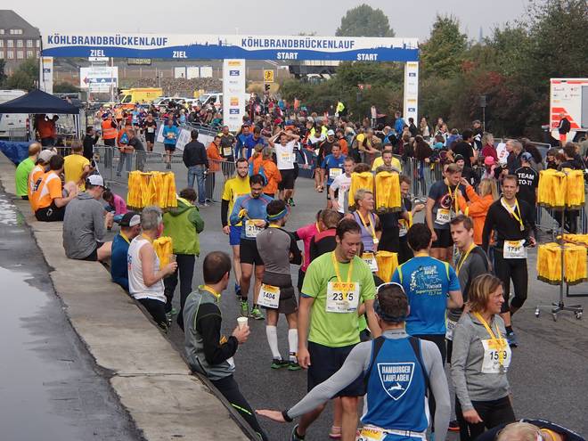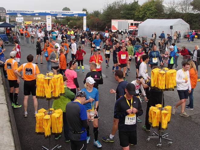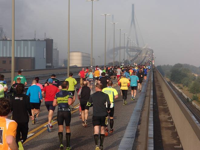 Stimmung | 4 Punkte | Prima Stimmung bei Start und Ziel. Den Rest de Strecke waren wir Läufer für uns alleine. Auf die Brücke durfte sonst ja auch keiner und der Rest ist Hafengebiet. |