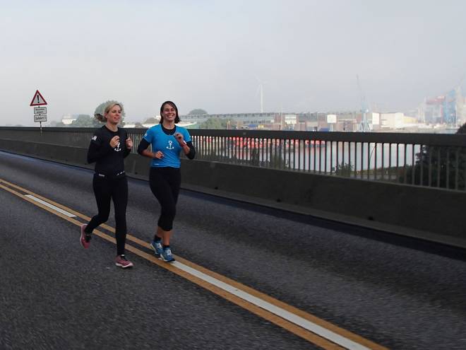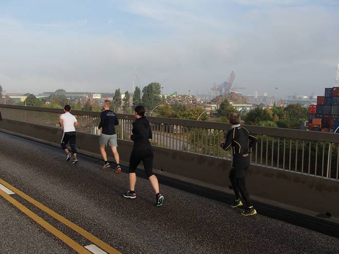 Strecke | 10 Punkte | Tja, man startet in einem Industriegebiet, läuft dann durchs Nichts und zweimal über eine Brücke. Aber es ist nun einmal die Köhlbrandbrücke. Und mehr geht in Hamburg nun einmal nicht. |