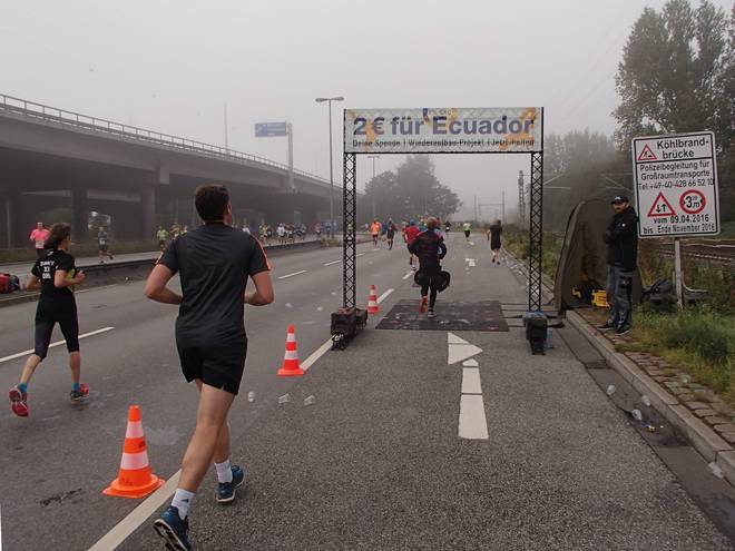 Köhlbrandbrücke 9.32 Uhr / Km 6,2 Zwei Euro Spende? Okay. Kann man machen. |