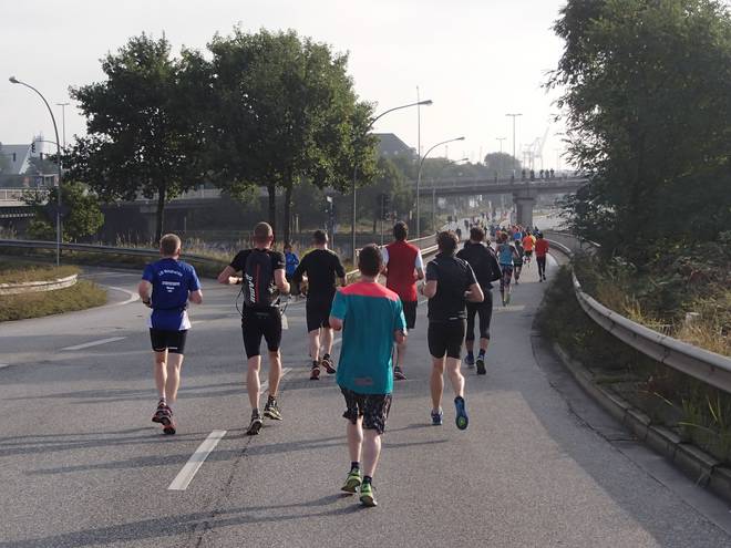 alles bekannt vor. Der Köhlbrandbrückenlauf an einem Montag und genau