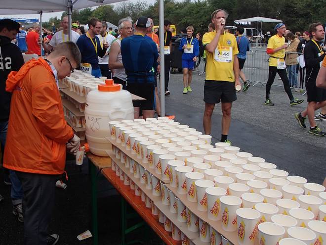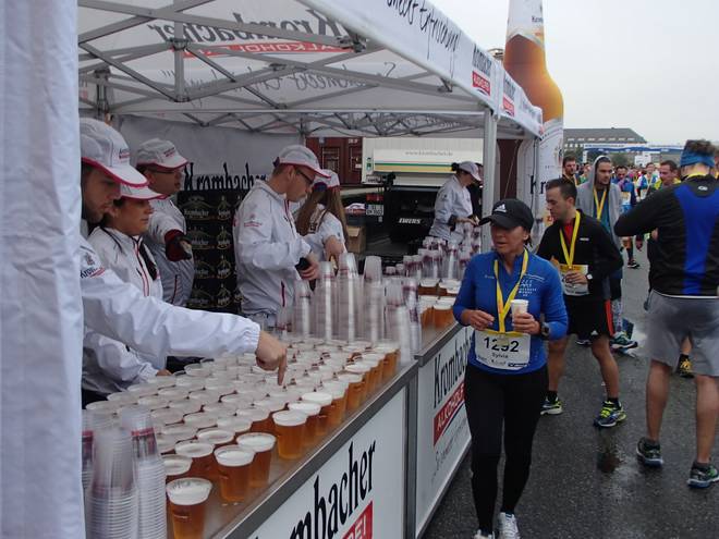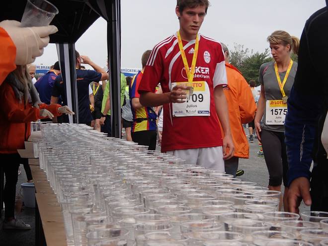 Verpflegung | 7 Punkte | Bei 12 Kilometern reichte die eine Wasserstelle aus. Bei Start und Ziel gab es Wasser, Iso und Bier für Läufer und für alle waren reichlich Futter-Buden aufgebaut. Da aber dann gegen Euro. |