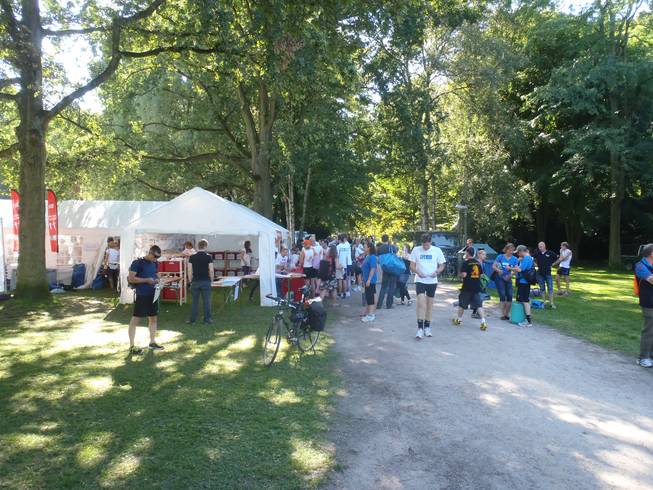 Stadtpark Hamburg, 16.19 Uhr Die Anmeldung pro Team kostete inzwischen € 80,00. Trotzdem war der Lauf mit 1100 Teams ausgebucht. 1056 kamen davon an den Start. |