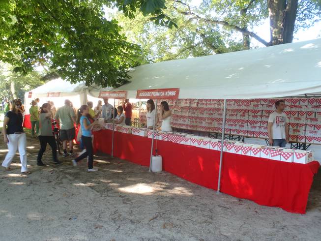 Stadtpark Hamburg, 16.20 Uhr Für jedes Team gab es wie immer einen leckeren Picknick-Korb. Und wie immer reichhaltig gefüllt. |