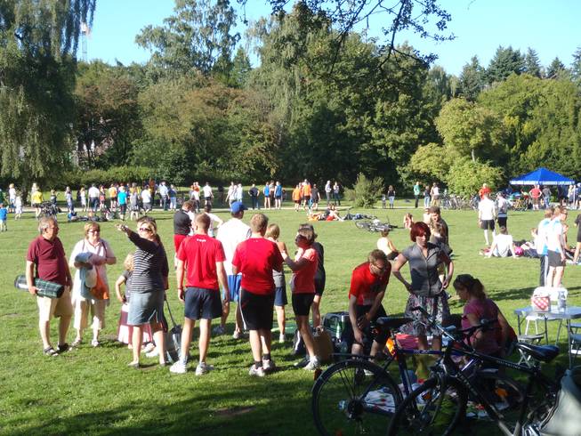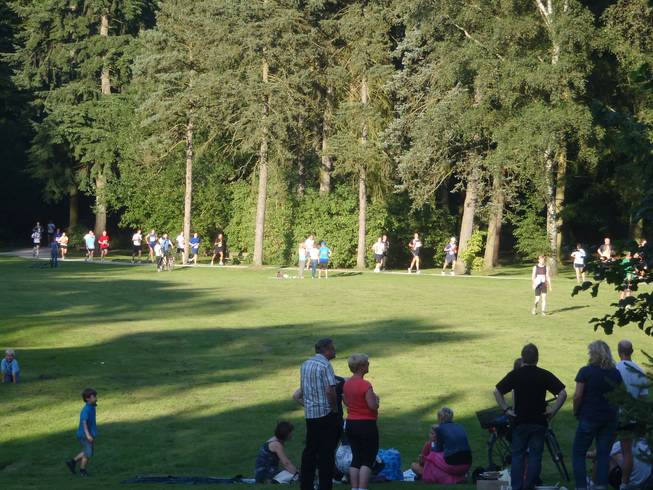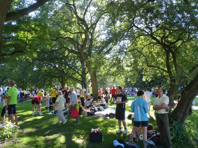 Stadtpark Hamburg, 19.13 Uhr An Zuschauern mangelt es nicht. Zumindest in der Nähe der Wiesen bei Start und Ziel ist immer viel los. Da wird es teilweise schon recht eng mit Überholen. |