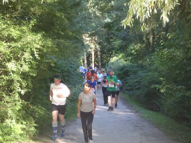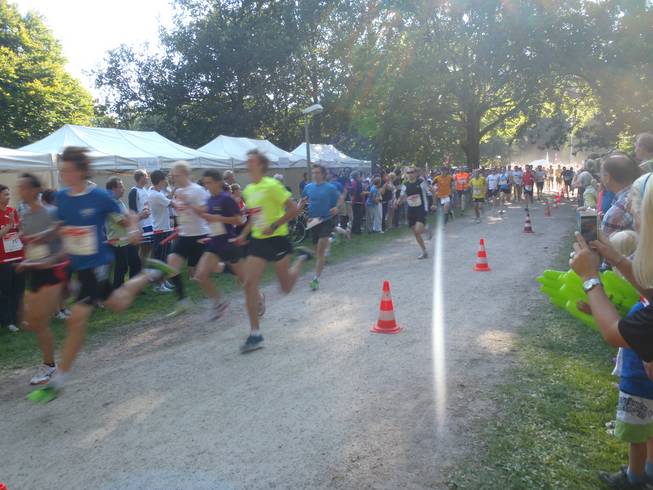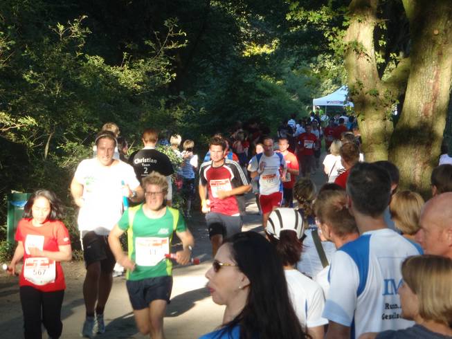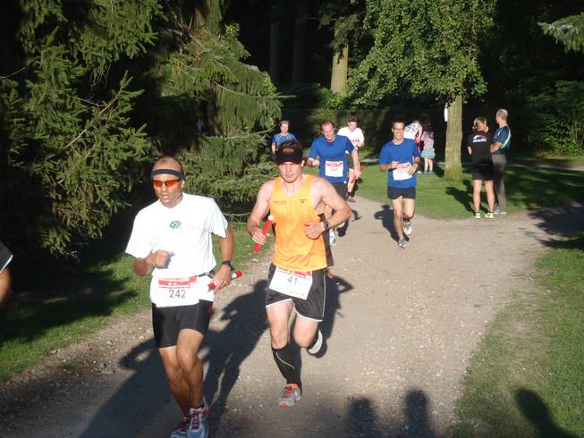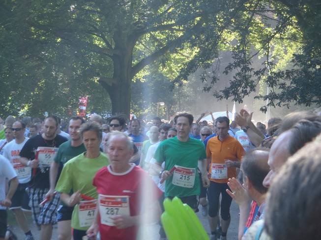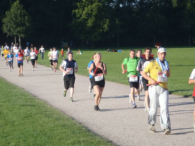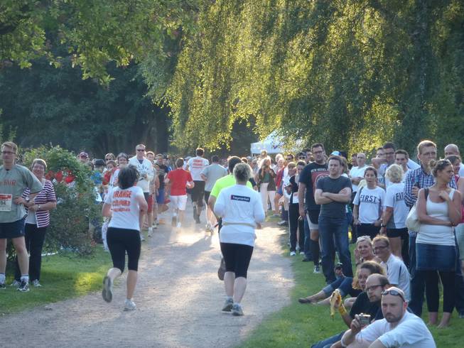 Stadtpark Hamburg, 17.30 Uhr Und dann ging es auch schon los. Wie immer bildeten fünf Läufer ein Team. Jeder läuft eine Fünf-Kilometer-Runde durch den Stadtpark. Die schnellste Staffel war nach 1:21:08 Stunden fertig. |