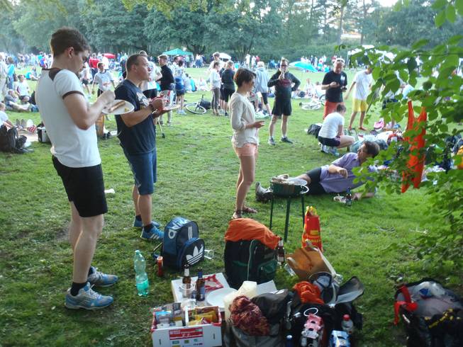 Stadtpark Hamburg, 17.46 Uhr Und während jeweils ein Läufer läuft, genießen die anderen das schöne Wetter. |