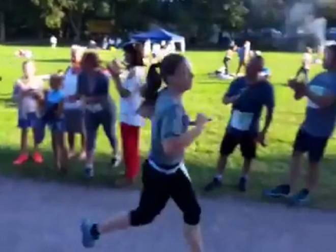 Stadtpark Hamburg 18.18 Uhr Is auf dem fiesen Anstieg zur Otto-Wels-Straße, so 750 Meter vor dem Ziel. Das Bild kommen aus einem Handy-Video von ich weiß gar nicht wem. Nach etwas mehr als 22 Minuten übergab sie dann den Staffelstab an mich. |