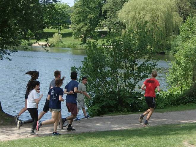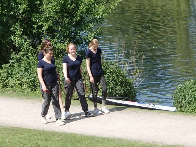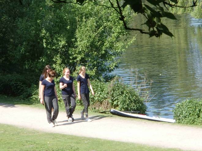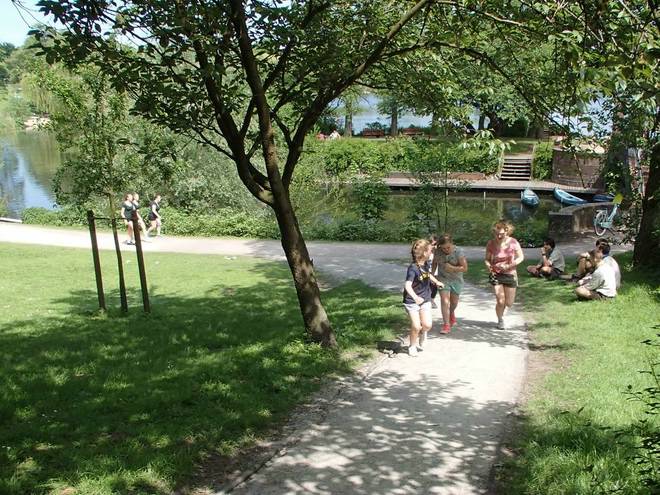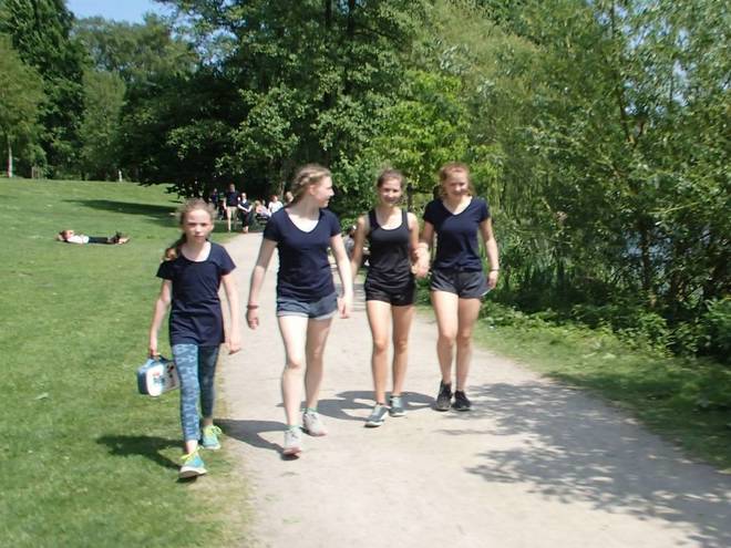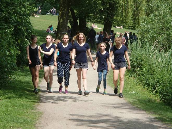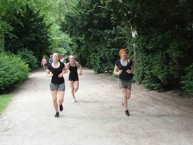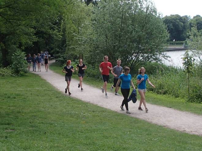 Stadtpark Hamburg 15.17 Uhr Während ich verzweifelt versucht, meinen leeren Trinkflaschen doch noch ein paar Tropfen mehr zu entlocken, liefen immer noch Pfadfinderinnen um den Kurs. |
