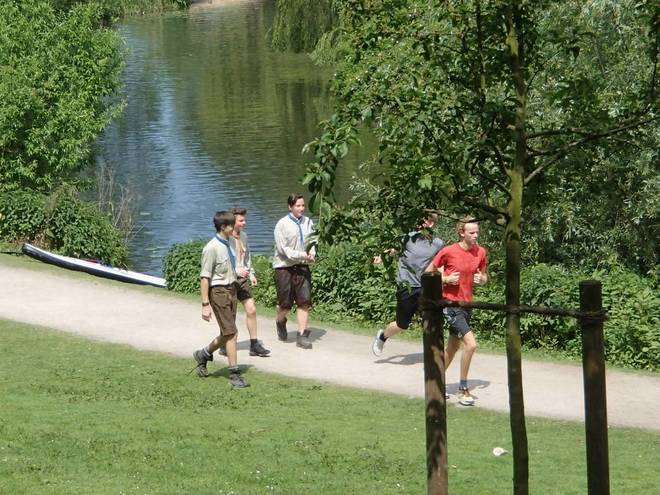 Runde 6 12.55 Uhr Pfadfinder waren auch mit von der Partie. Einige rannte sogar in den recht klobigen Wanderstiefeln. Respekt. |