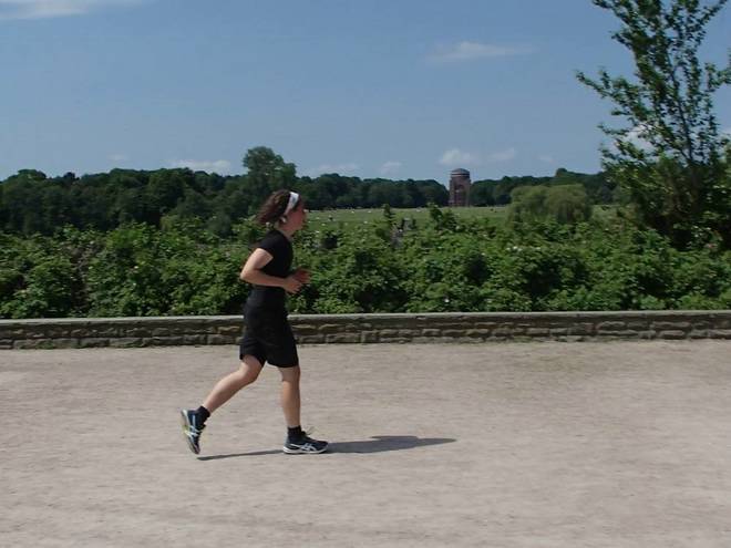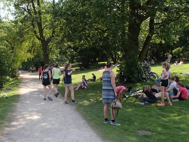Runde 17 14.26 Uhr Bei dem sommerlichen Wetter war der Stadtpark natürlich voll. Dabei störten mich weniger die vielen Leute auf dem Weg als vielmehr der ständige Grill-Geruch. Ich hatte ständig Hunger. |