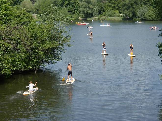 Stadtpark Hamburg 12.13 Uhr Während der Anmelde-Pavillon auf der Wiese aufgebaut war, fand man Start und Ziel rund 50 Meter entfernt unten am Stadtparksee. |