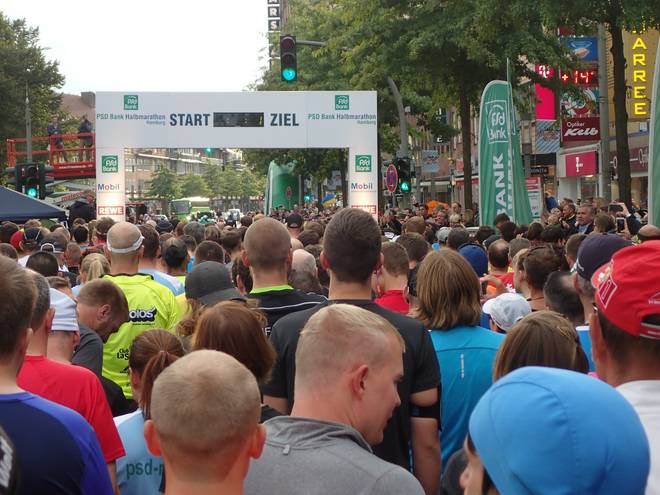 Stimmung | 8 Punkte | Im Bereich der Starts und im Ziel war prima Stimmung, auf der Strecke war erstaunlich viel los. Es war zwar nicht wie beim Hamburg-Marathon, aber der Halbmarathon trieb die Anwohner auf die Straße. |